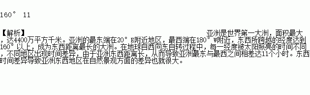 亚洲东西跨经度_______________,时差达_________个小时。