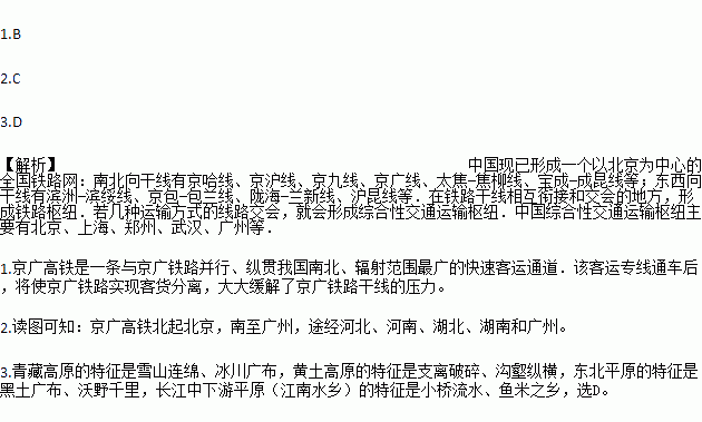 1.京广高铁的开通运营,运输压力能得到大大缓解的铁路干线是