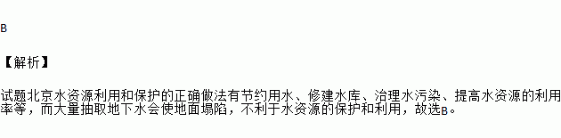 A. 节约用水 B. 大量抽取地下水 C. 修建水库 D. 治理污染