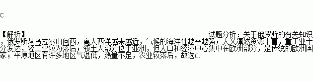 A. 从乌拉尔山脉向西,气候大陆性增加 B. 矿产资源丰富,轻重工业都很发达