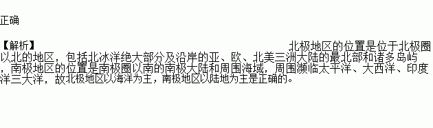 北极地区以海洋为主,南极地区以陆地为主。( )
