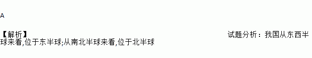 A 【解析】试题分析:我国从东西半球来看,位于东半球;从南北半球来看,位于北半球