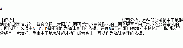 A. 水往低处流 B. 喜马拉雅山有海洋生物化石