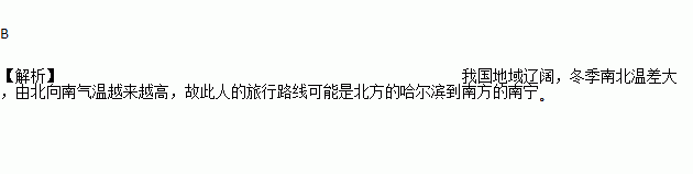 ´ºÌì£¬Ò»Î»×ø»ð³µµÄÂÃÐÐÕߣ¬µ±µ½´ïÄ¿µÄµØÊ±£¬ÂÃÐдüÄÚ×°ÂúÁËËûһ·ÉÏÍÑÏÂÀ´ÔÝʱ²»´©µÄÒ·þ£®´ËÈ˵ÄÂÃÐзÏß¿ÉÄÜÊÇ£¨¡¡¡¡£©