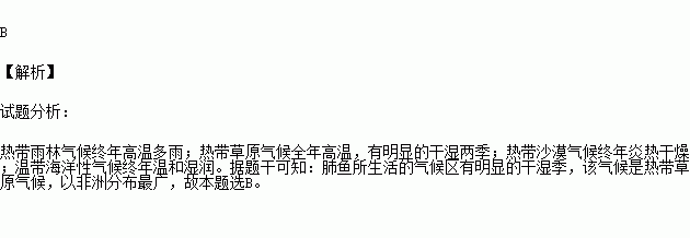 非洲有一种奇特的鱼叫肺鱼,当河流中有水时它用鳃呼吸,当河流中没水时它用肺呼吸。这是长期适应哪一种气候环境的结果