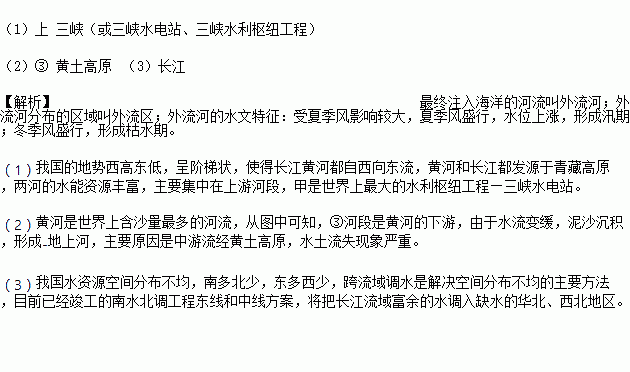 (1)黄河和长江都发源于青藏高原,两河的水能资源丰富,主要集中在______(填“上”“中”或“下”)游河段,甲是世界上最大的水利枢纽工程——_____。