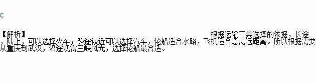 太和一中八年级二班的小花和姐姐2011年暑假从重庆到武汉,沿途观赏三峡风光,她们选择的交通工具是