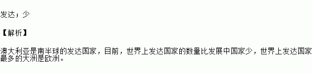 根据经济发展水平划分,澳大利亚属于________国家;目前,世界上发达国家的数量比发展中国家________.