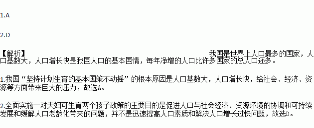 1.我国“坚持计划生育的基本国策不动摇”的根本原因是