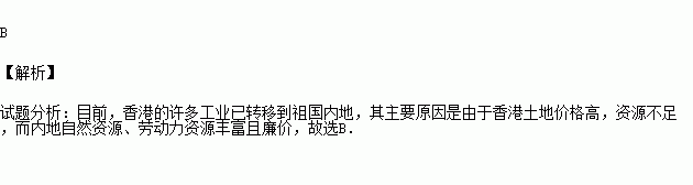 目前,香港的许多工业已转移到祖国内地,其主要原因是( )