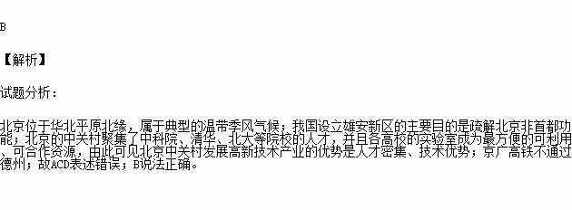 B.我国设立雄安新区的主要目的是疏解北京非首都功能