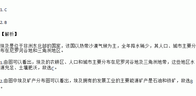2.埃及拥有的发展工业的主要能源和矿产资源是( )