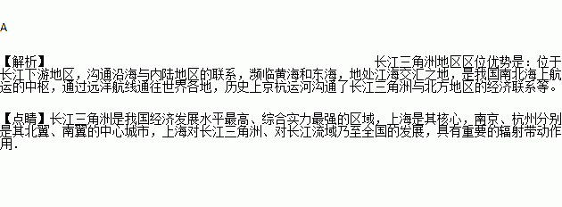 A. 位于长江下游,东临黄海和南海 B. 这里的长江河运享有“黄金水道”的美誉