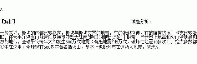 A. 环太平洋地带 B. 亚洲内部 C. 北冰洋沿岸 D. 非洲