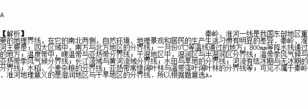 A. 湿润地区和干旱地区的分界限 B. 亚热带与暖温带地区的分界限 C. 我国农业类型中的旱地和水田的分界线 D. 我国北方地区和南方地区的分界线