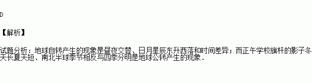 一年当中,每日正午时校园旗杆的影子长短均有变化,主要原因是