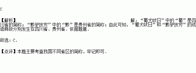 “蜀犬吠日”和“黔驴技穷”的成语典故分别发生在( )