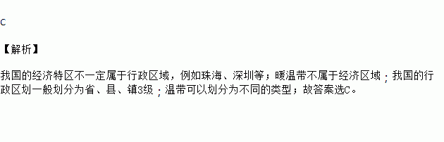 A. 我国的经济特区属于行政区域 B. 暖温带属于经济区域