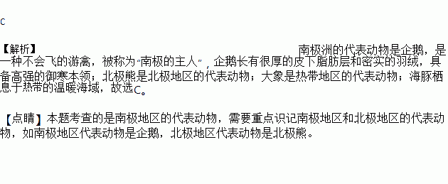 A. 北极熊 B. 海豚 C. 企鹅 D. 大象