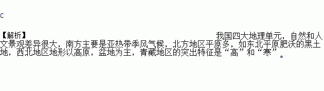C. 青藏地区的突出特征是“高”和“寒” D. 北方地区的华北平原是肥沃的“黑土地”