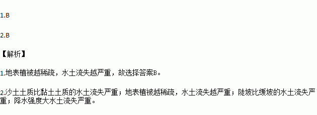 C. 降水强度越小,水土流失越严重 D. 黏土土质比沙土土质疏松,水土流失严重