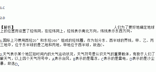 1.国际上习惯用西经20°和东经160°组成的经线圈,作为划分东、西半球的界线.甲、乙、丙三地中,位于东半球的是( )