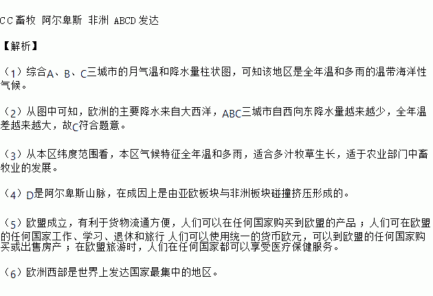 £¨1£©×ÛºÏA¡¢B¡¢CÈý³ÇÊеÄÔÂÆøÎºͽµË®Á¿Öù״ͼ£¬ÃèÊöÈý³ÇÊй²Í¬µÄÆøºòÌØµãµÄÊÇ£¨____£©