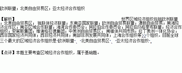 目前全球三个最大的区域经济合作组织是“________”、“________”、“________”。