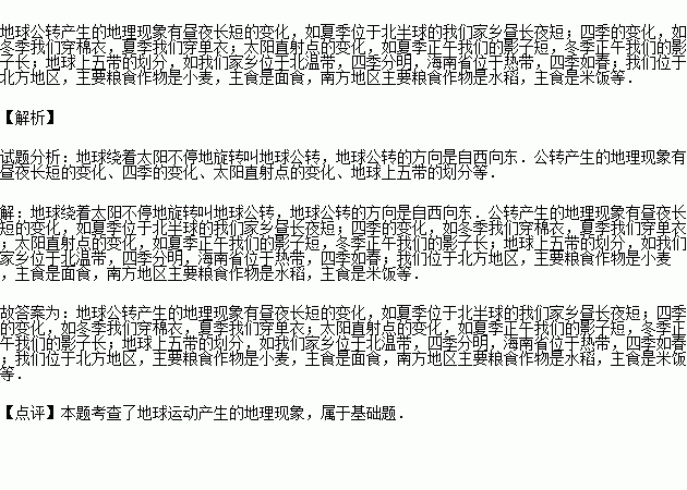 列举五个例子说明地球公转对我们日常生活产生的影响.