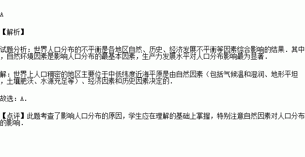 世界上人口稠密地区主要位于中低纬度近海平原地带,原因是( )