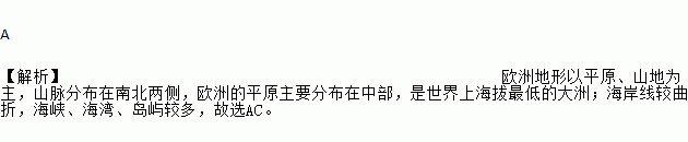 A ¡¾½âÎö¡¿Å·ÖÞµØÐÎÒÔÆ½Ô­¡¢É½µØÎªÖ÷£¬É½Âö·Ö²¼ÔÚÄϱ±Á½²à£¬Å·ÖÞµÄÆ½Ô­Ö÷Òª·Ö²¼ÔÚÖв¿£¬ÊÇÊÀ½çÉϺ£°Î×îµÍµÄ´óÖÞ£»º£°¶Ïß½ÏÇúÕÛ£¬º£Ï¿¡¢º£Íå¡¢µºÓì½Ï¶à£¬¹ÊÑ¡AC¡£