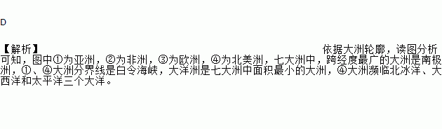 A. ①大洲是跨经度最广的大洲 B. ①、④大洲分界线是巴拿马运河