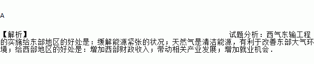 A 【解析】试题分析:西气东输工程的实施给东部地区的好处是:缓解能源紧张的状况;天然气是清洁能源,有利于改善东部大气环境;给西部地区的好处是:增加西部财政收入;带动相关产业发展;增加就业机会.