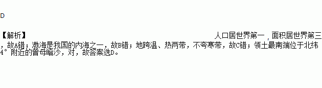 D. 领土最南端位于北纬4度附近的曾母暗沙
