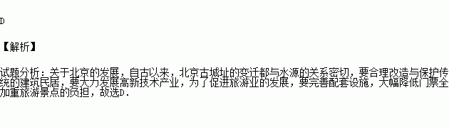 A.自古以来,北京古城址的变迁与水源的关系密切