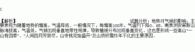 C. 随着海拔的升高,气温逐渐降低 D. 南方气温比北方的高