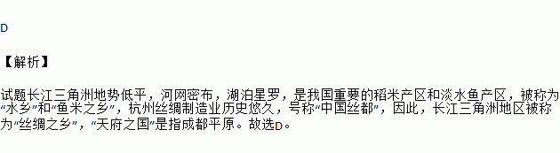 A. “水乡” B. “鱼米之乡” C. “丝绸之乡” D. “天府之国”