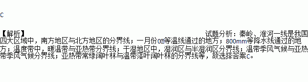 下列与秦岭—淮河一线相吻合的是: