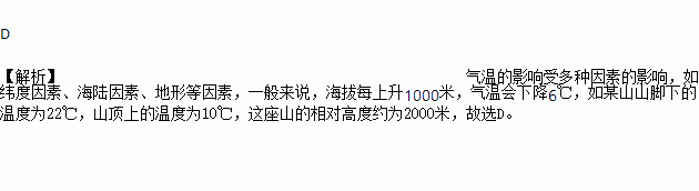某山山脚下的温度为22 ℃,山顶温度为10 ℃,这座山的相对高度是()