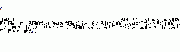 A. 煤炭 B. 钢铁 C. 精密仪表 D. 电视机