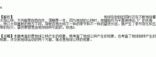 A. 昼夜更替 B. 五带的差异 C. 四季的变化 D. 昼夜长短的变化