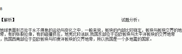A. 东部和北部处于板块交界地带 B. 东部和西南处于板块交界地带