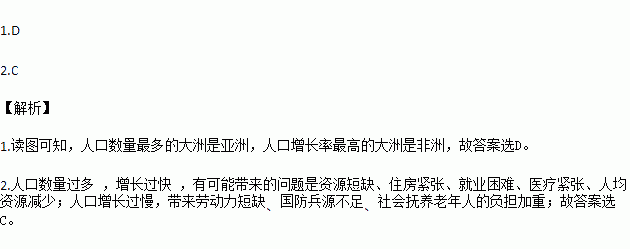 1.读下图可知 ,人口数量最多和增长率最高的大洲分别是