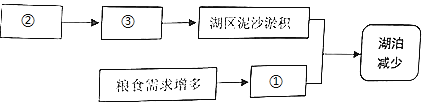 (3)近百年来,由于②流域内人们滥伐森林,造成③水士流失严重,导致湖区泥沙淤积;同时,人口增加,造成粮食需求增多,导致人们①实施围湖造田,最终导致湖泊减少。