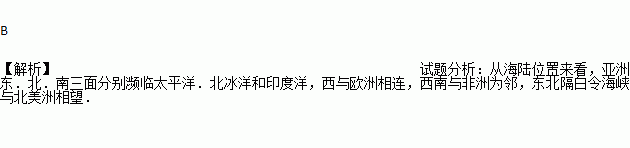 A. 东临欧洲,西临太平洋 B. 南临印度洋,北临北冰洋 C. 东临北美洲,西临大西洋 D. 东临大西洋,西临印度洋