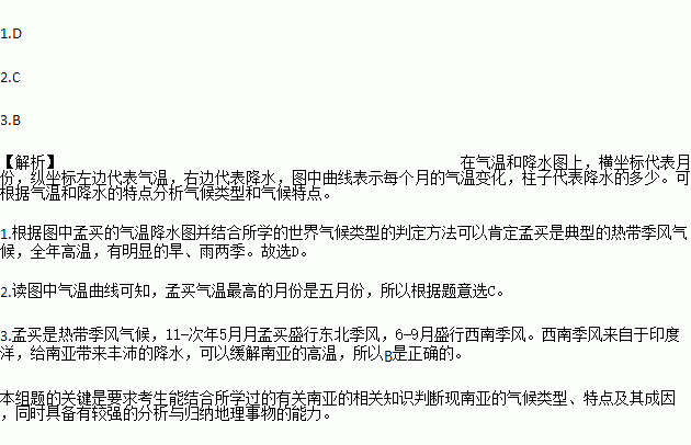 1.有关孟买气候特点的叙述正确的是( )