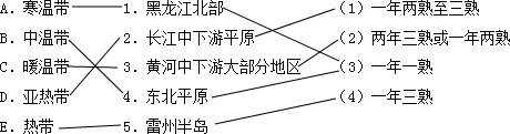 解答 解:(1)秦岭-淮河线以南,西双版纳、雷州半岛、海南省和台湾省的南部属于热带,作物熟制为一年三熟,其余均属于亚热带,如长江中下游平原,作物熟制为一年两熟到三熟;秦岭-淮河线以北从南向北分布为暖温带、中温带、寒温带,塔里木盆地、华北平原、黄土高原,以及辽宁省南部等地区属于暖温带,作物熟制是两年三熟或一年两熟;大兴安岭北段及其两侧地区属于寒温带,如黑龙江北部,作物熟制是一年一熟;在暖温带与寒温带之间是中温带地区,包括准噶尔盆地、内蒙古高原、东北平原等,作物熟制是一年一熟;
