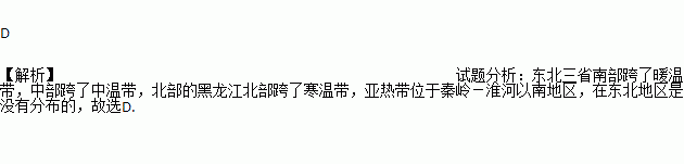 A. 寒温带 B. 中温带 C. 暖温带 D. 亚热带