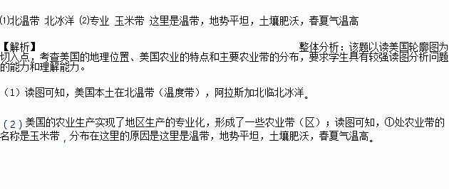 (2)美国的农业生产实现了地区生产的 化,形成了一些农业带(区);①处农业带的名称是 ,分布在这里的原因是 .