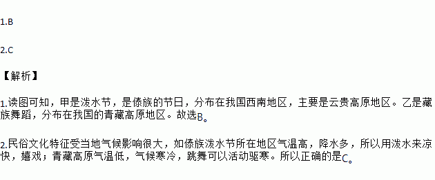 2.图中所示民俗文化特征受当地气候影响的说法中,正确的是